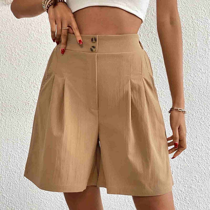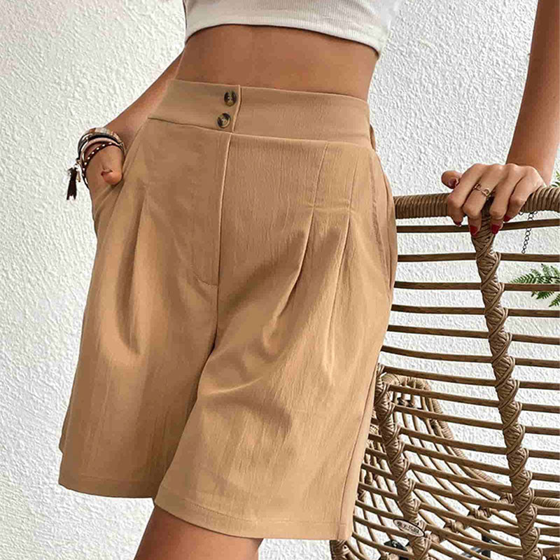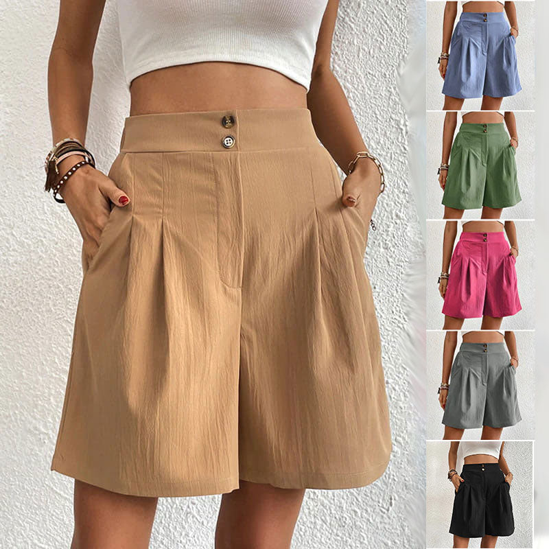 Buďte v létě v pohodě a stylové s našimi dámskými letními jednoduchými kalhotami s vysokým pasem a širokými nohavicemi. Tyto šortky jsou dokonalou kombinací pohodlí a elegance a jsou navrženy tak, abyste v teplých dnech vypadali a cítili se co nejlépe. Design s vysokým pasem a silueta se širokými nohavicemi vytvářejí lichotivý a módní vzhled, který bez námahy přechází z ležérního do společenského stylu. Ať už míříte na pláž, vyřizujete pochůzky nebo si užíváte den s přáteli, tyto šortky jsou nezbytným doplňkem vašeho letního šatníku.