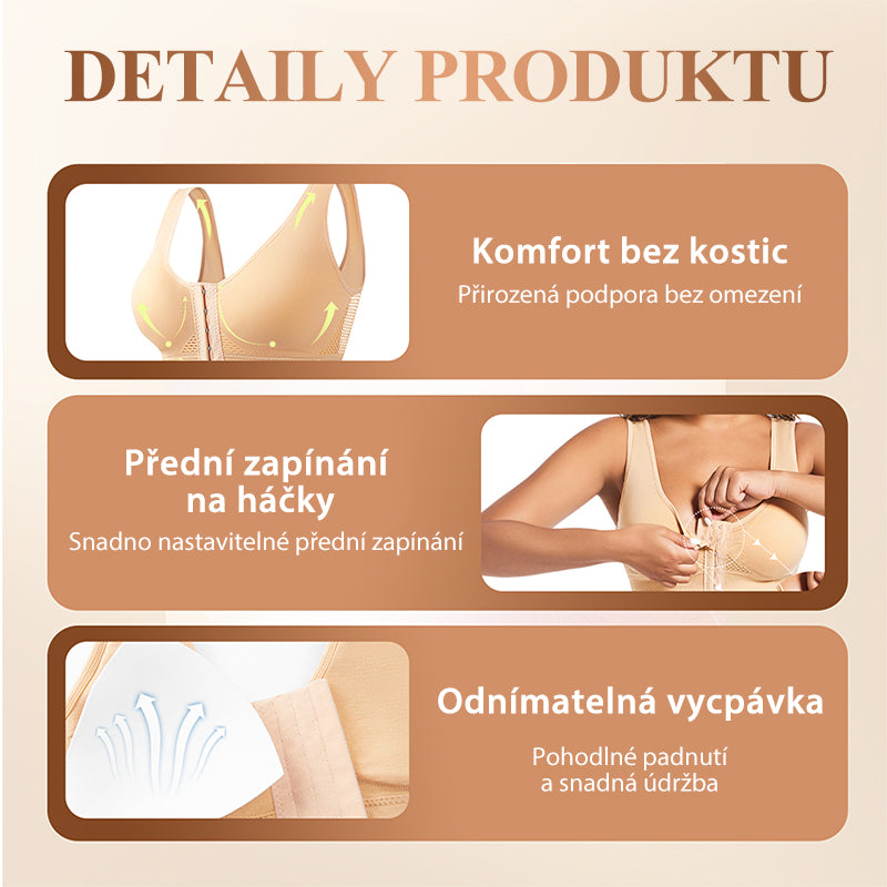 KONEC S NEPŘÍJEMNOSTÍ KOSTIC: Pociťte rozdíl v pohodlí díky podprsence bez kostic, která se pohybuje spolu s vámi. Náš inovativní střih obepíná přirozený tvar bez tlačení nebo píchání, zajišťuje celodenní pohodlí a podporu, jako byste vůbec žádnou podprsenku nenosila.