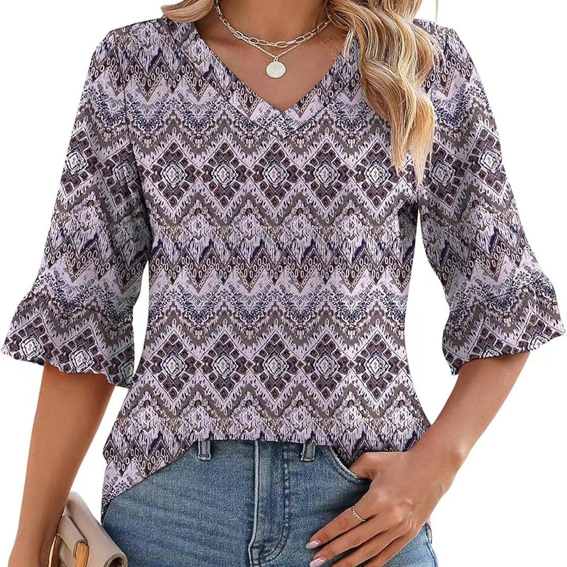 Dámská elegantní trička s volánkovým rukávem a výstřihem do V