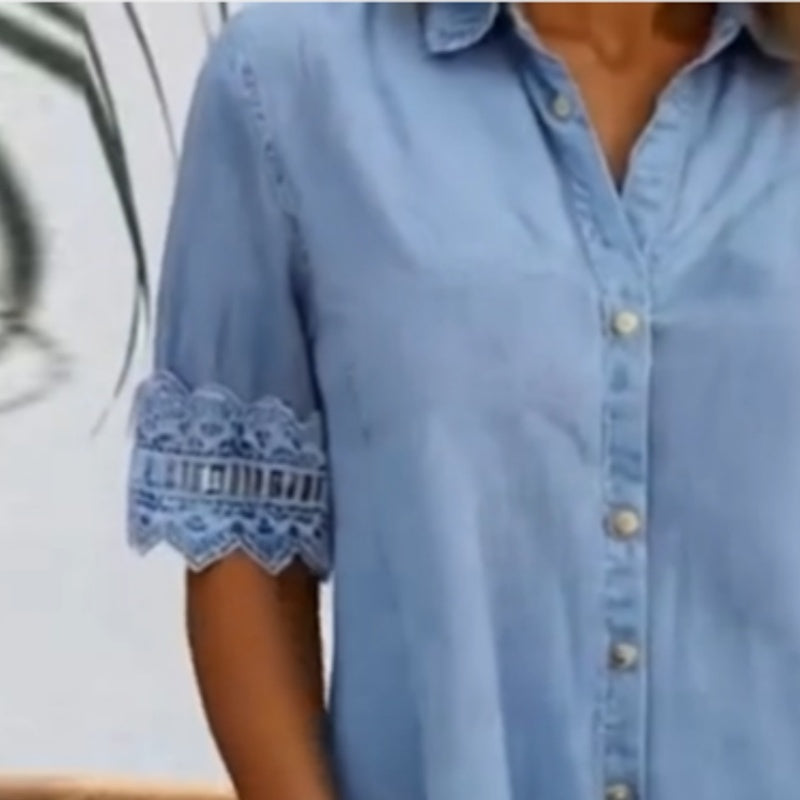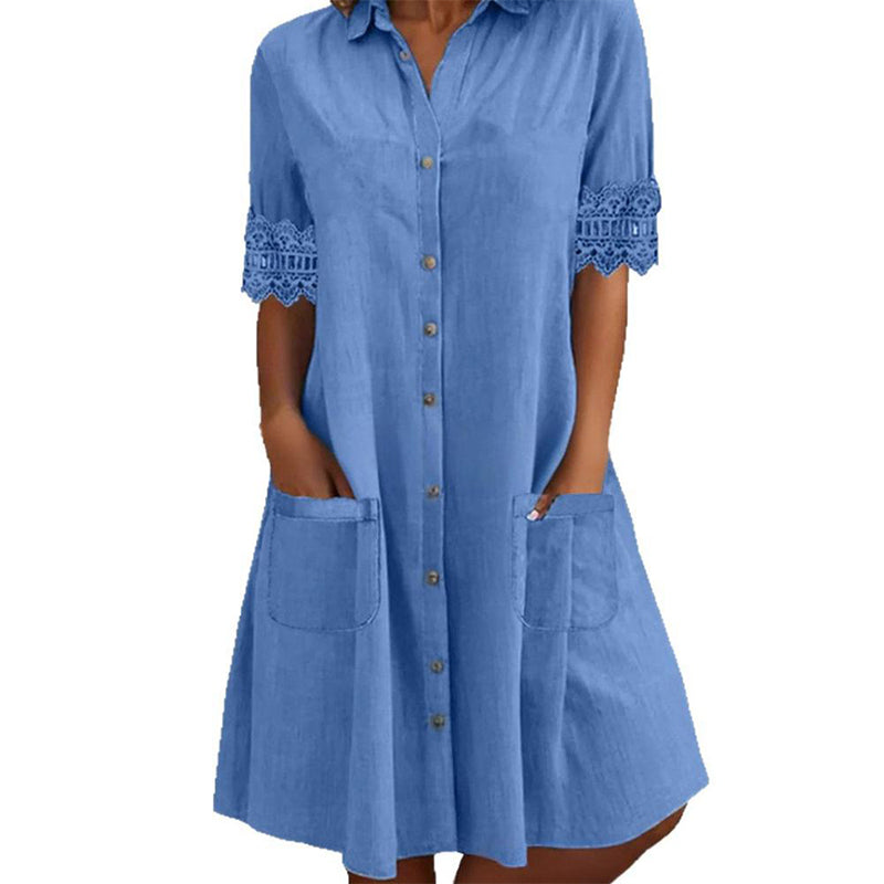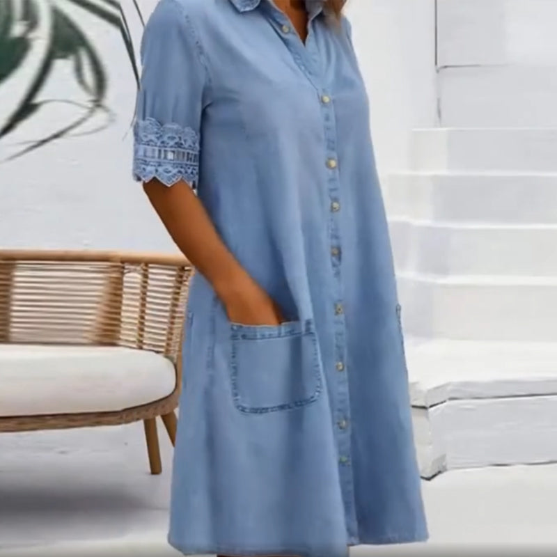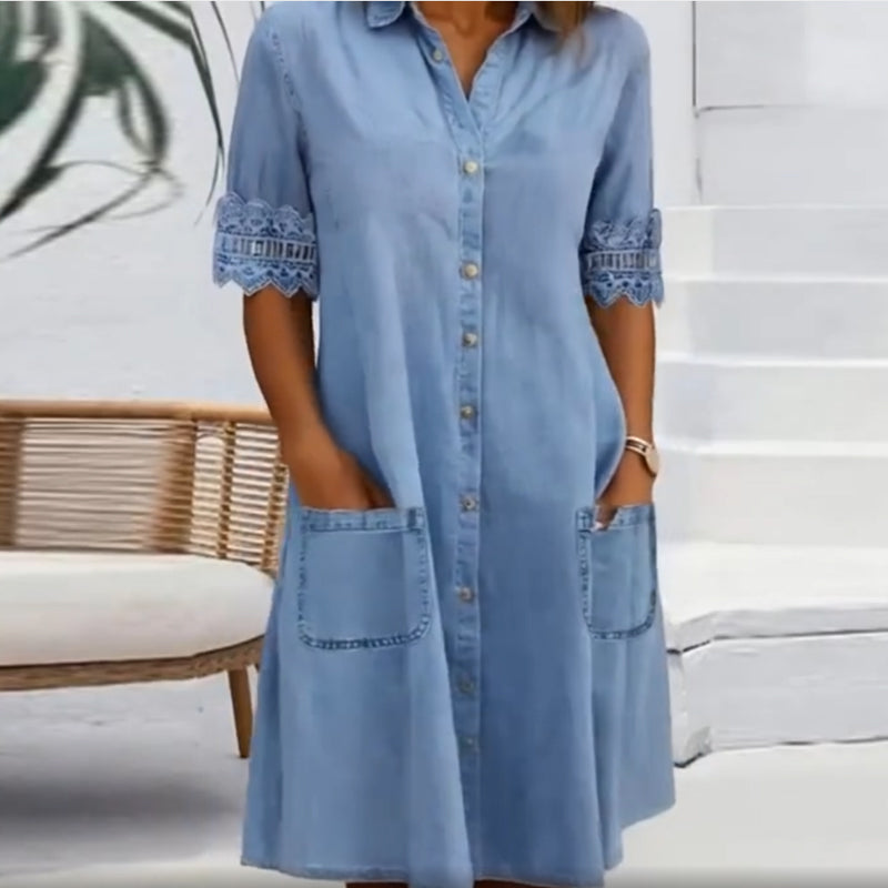 DELIKÁTNÍ KRAJKOVÝ OBRÁZEK - Jemný krajkový lem na manžetách podtrhuje ženský půvab šatů. Tento složitý detail vnáší do jednoduché struktury džínové tkaniny romantické a módní prvky, čímž zvyšuje celkovou přitažlivost.