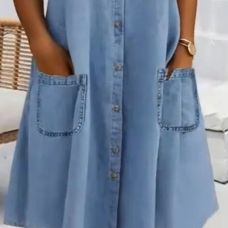 Balení obsahuje: 1* Dámské elegantní jednobarevné džínové šaty