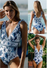 🩱V Výstřih s krajkou a potiskem Jednodílné plavky a sukně✨