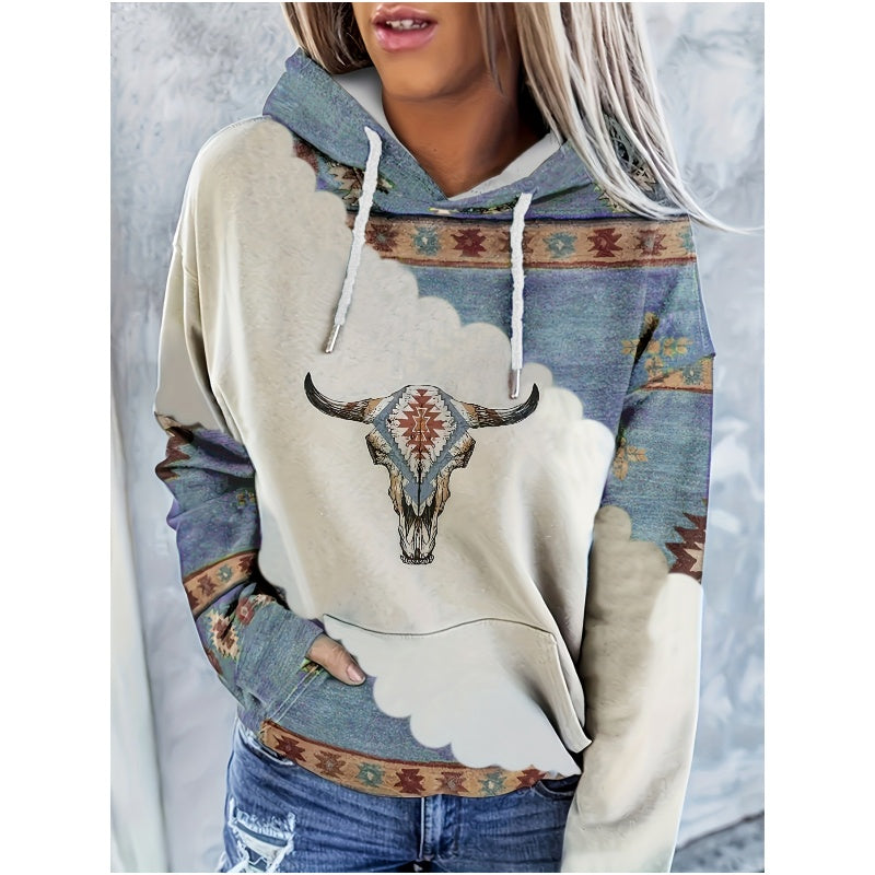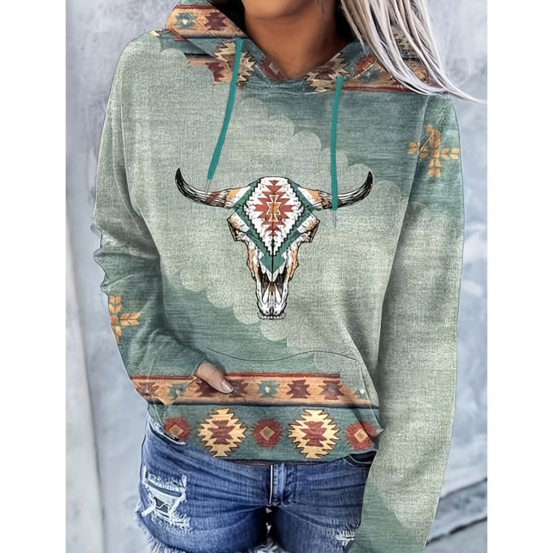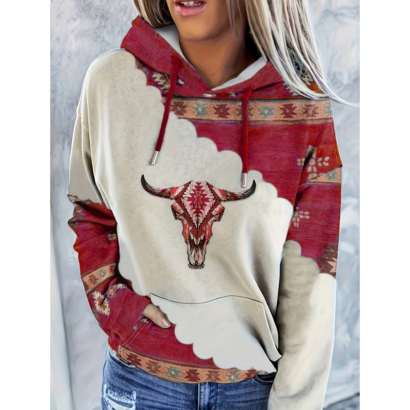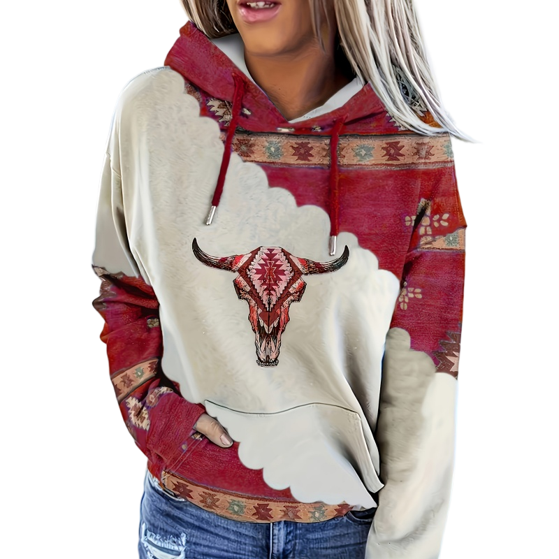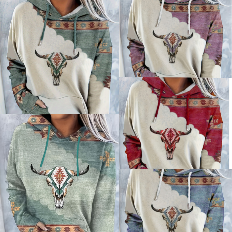 POTISK KRAVSKÉ LEBKY – Vyjádřete svůj styl jedinečným potiskem kravské lebky, který spojuje šarm s moderním nádechem. Tento potisk okamžitě upoutá pozornost a pomůže vám vyniknout v neformálním prostředí. Je ideální pro ty, kteří chtějí vyjádřit svou individualitu, a dodává odvážný nádech, který promění jednoduchou mikinu s kapucí v kousek, který bude středobodem vašeho šatníku.