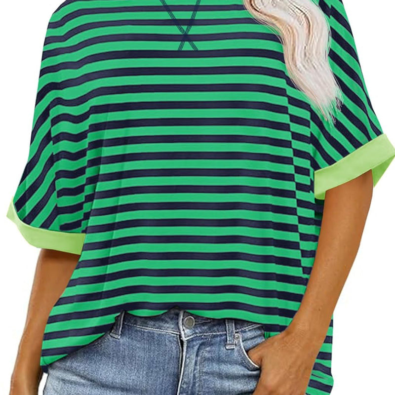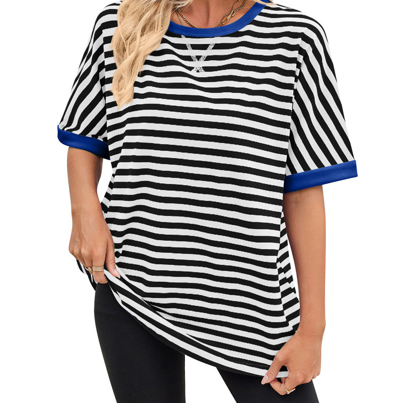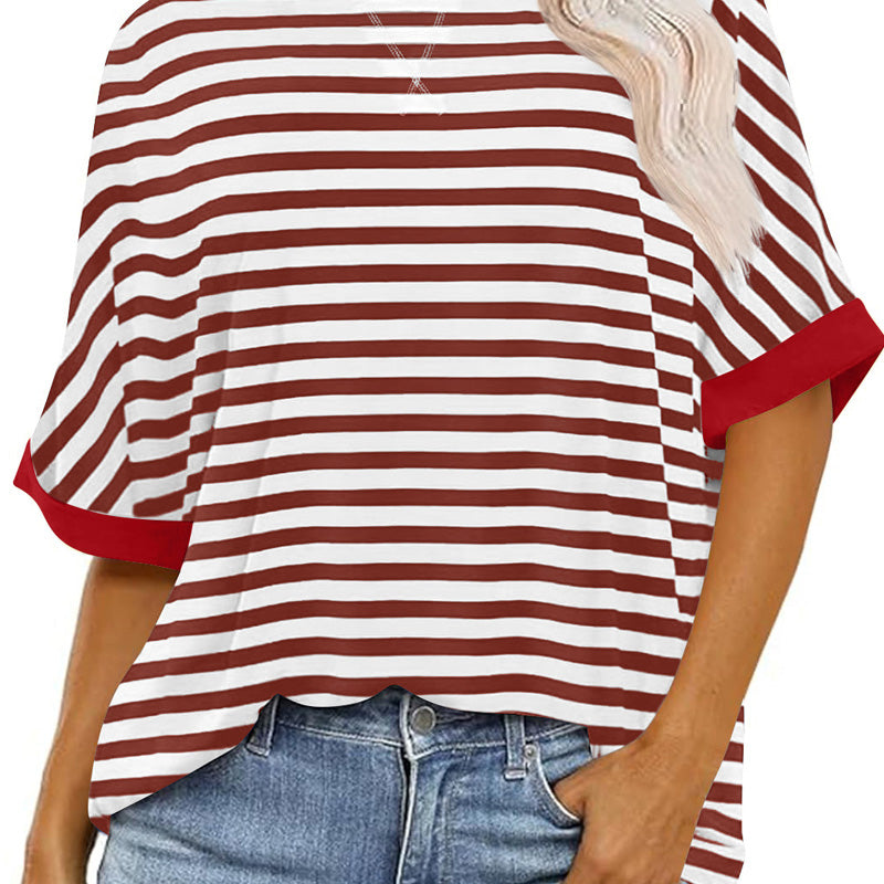 Balení obsahuje: 1*Dámské pruhované tričko uvolněného střihu