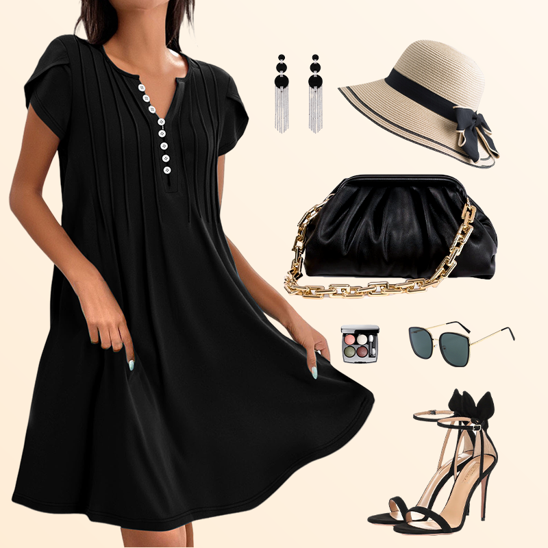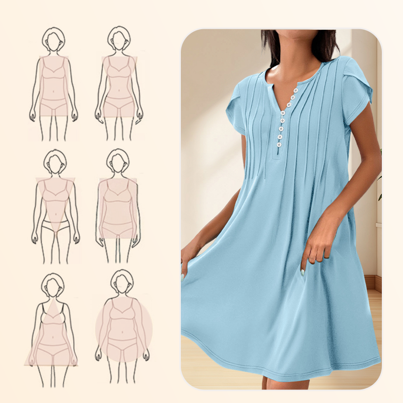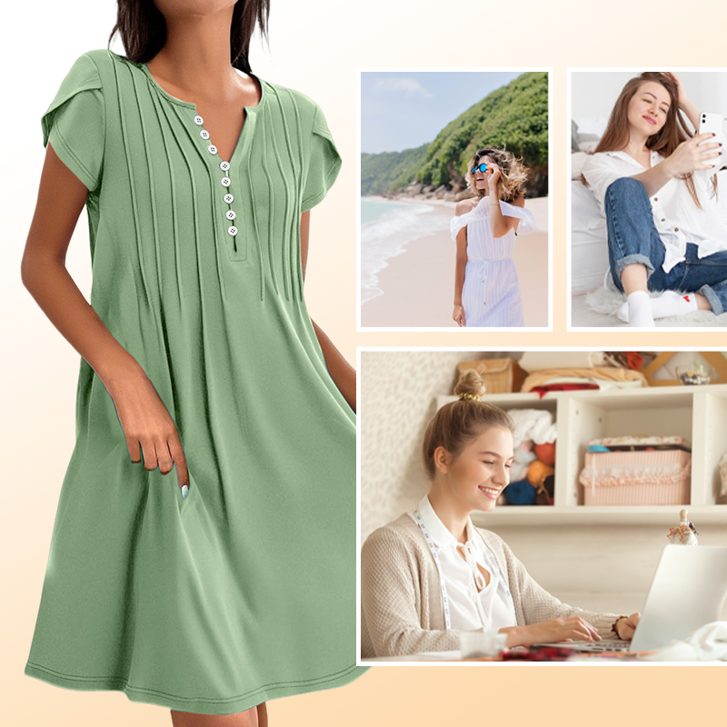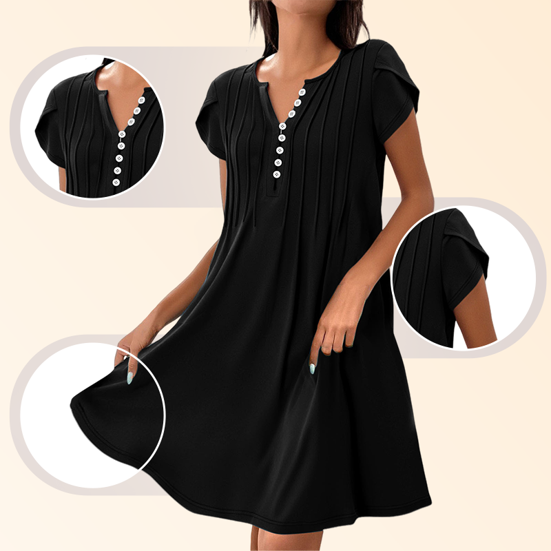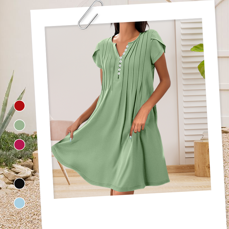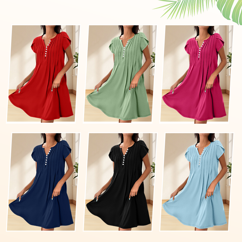 1 × Dámský jednobarevný svetr s výstřihem do V, pohodlné ležérní šaty na knoflíky